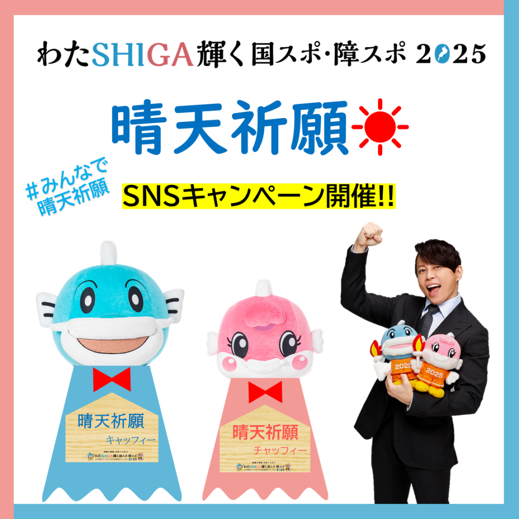 わたSHIGA輝く国スポ・障スポ晴天祈願企画として6月25日(水)から7月27日(日)までの間、以下のとおりSNSキャンペーンを開催します。みんなの願いを一つにして大会を成功させましょう!