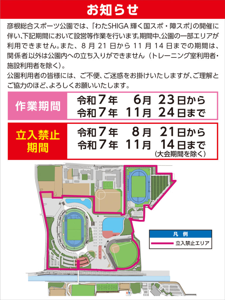 会場設営等作業に伴う彦根総合スポーツ公園の利用制限のお知らせ
