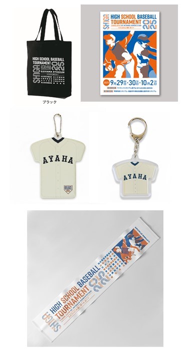 | (一財)滋賀県高等学校野球連盟 | ●大会公式パンフレット(会場販売終了後、在庫がある場合はオンライン販売予定) ●出場校ユニフォームキーホルダー ●大会記念マフラータオル ●大会記念トートバック ●出場校ユニフォーム型パスケース | ![]() | https://shigakokuspo2025.stores.jp/ | 本大会の開催を記念して、出場校のユニフォームをモチーフにした記念グッズや公式パンフレットを製作・販売しています。 一部商品は大会終了後にオンラインでの受注販売も予定しており、全国の高校野球ファンの皆様にもお届けできるよう準備を進めております。 高校野球の熱戦を記念する一品として、ぜひお手元にお迎えください。 |