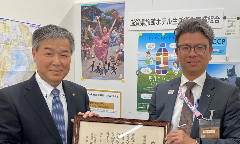 わたSHIGA輝く国スポ・障スポの御寄附に対する感謝状を贈呈しました(滋賀県旅館ホテル生活衛生同業組合様)