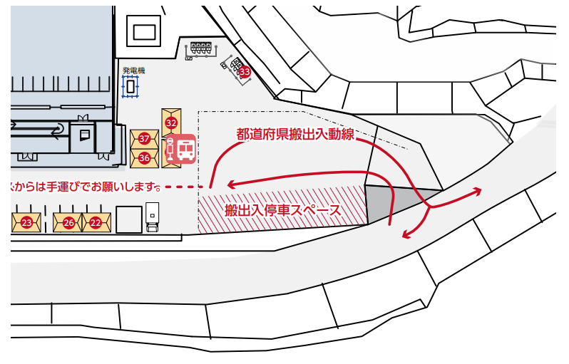 • 搬出入スペースが限られているため、搬出入後は直ぐに移動をおこなってください。
