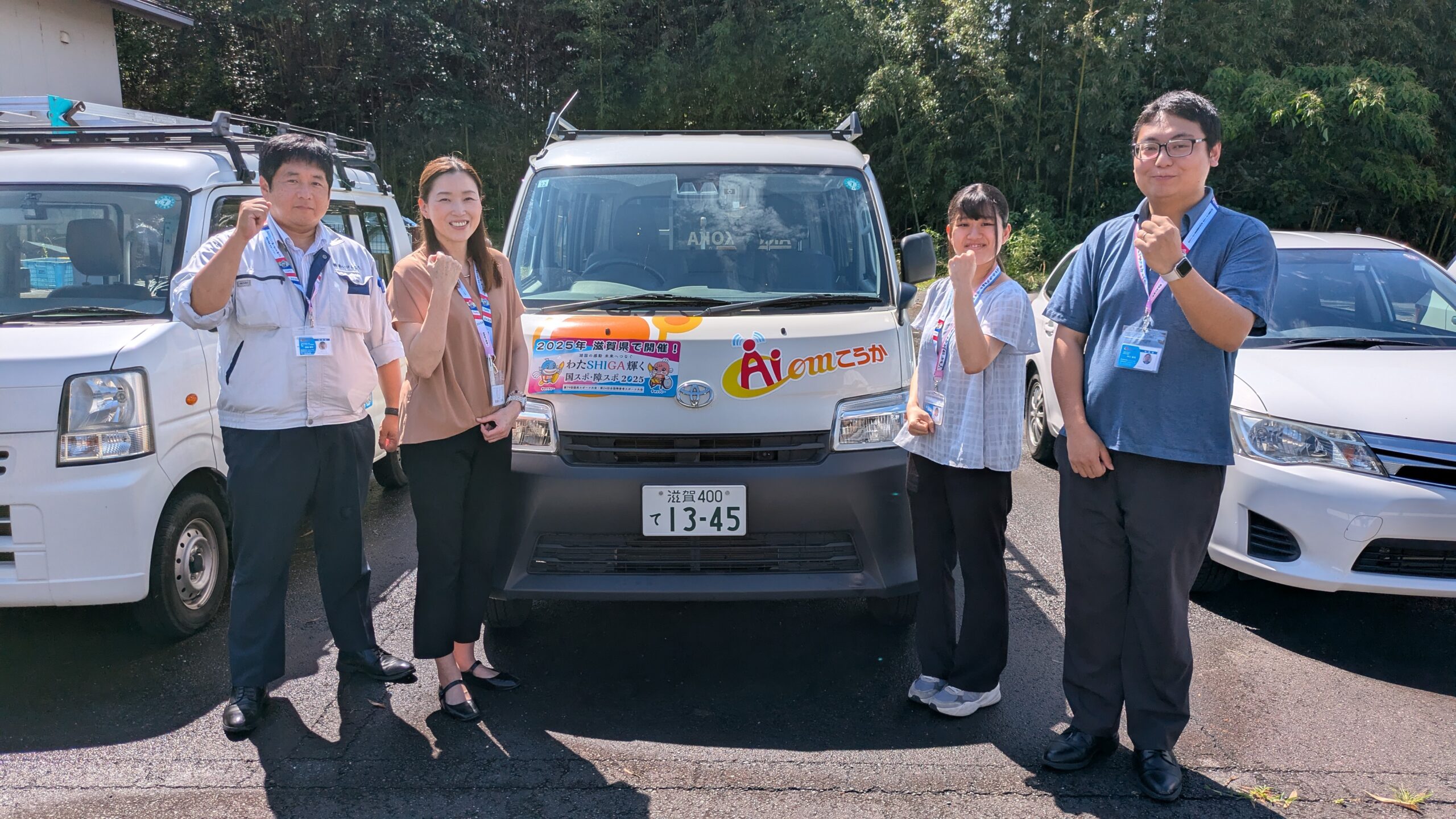 株式会社あいコムこうかでは、ケーブルテレビ局ならではの取り組みとして“番組制作および放送”で「わたSHIGA輝く国スポ・障スポ」をサポートしていきます! また、社用車全車にマグネットシートを貼付したり、営業およびお客さま窓口スタッフを中心にネックストラップや名刺用シールなどを駆使して、さまざまな場面で啓発活動をおこなっています!