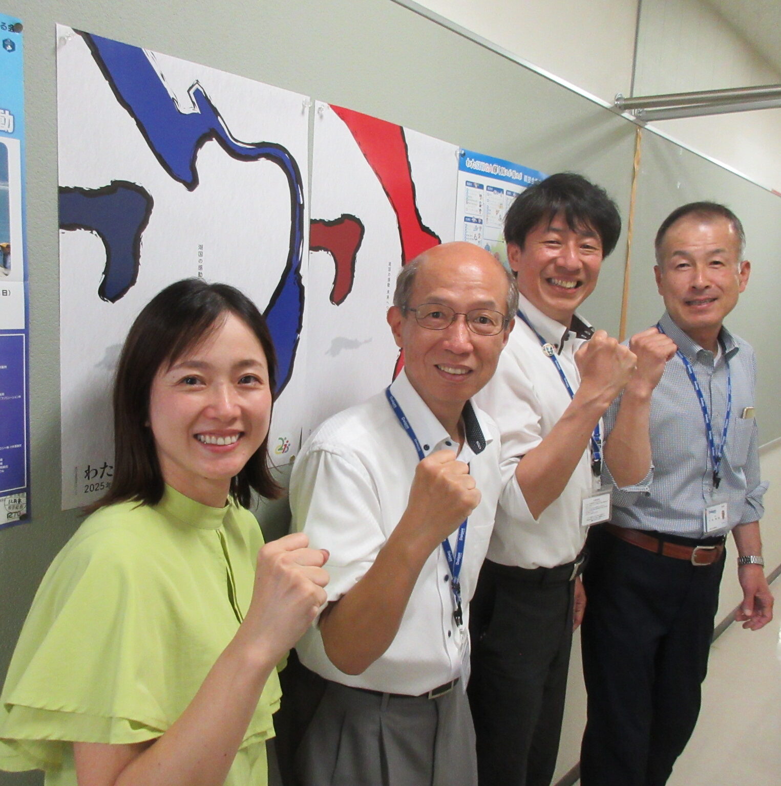 草津市内にある事務所の各フロアにポスターを掲示して、Daigasグループおよびご来社された方々への周知、盛り上げを行っています。44年ぶりとなる滋賀県開催の大成功を祈念しますとともに、出場選手ならびに大会運営に携わる皆さまに心からエールをお送りいたします。