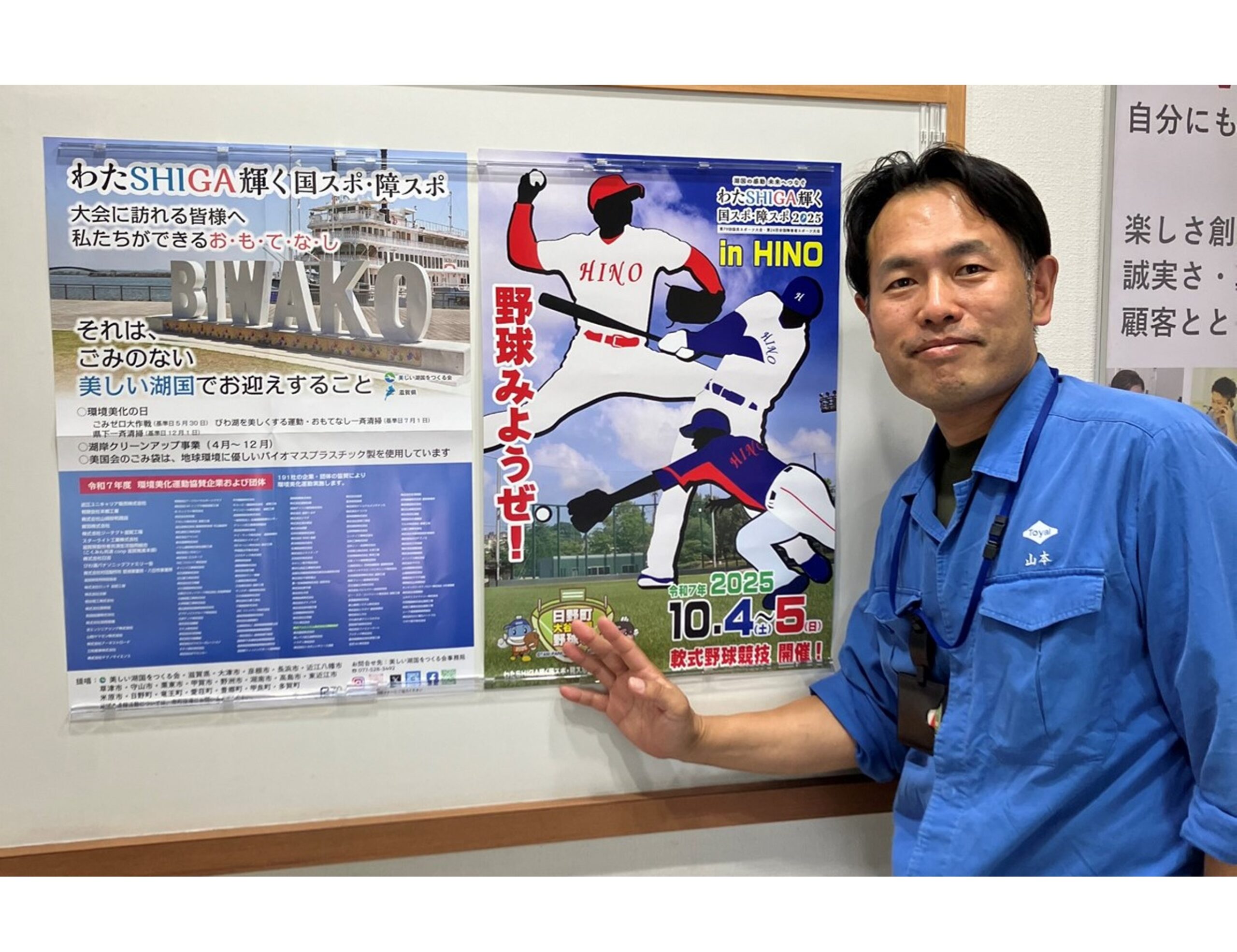 当事業所では、大会ポスターの掲出や駐車場の提供などを通じて従業員や来場されるお客様へ本大会のPRに取り組んでおります。日野町で開催される軟式野球競技をはじめ、44年ぶりに滋賀県で行われるこの歴史的な大会を地域の皆さまとともに盛り上げていきたいと思います。 がんばれ、滋賀県代表!