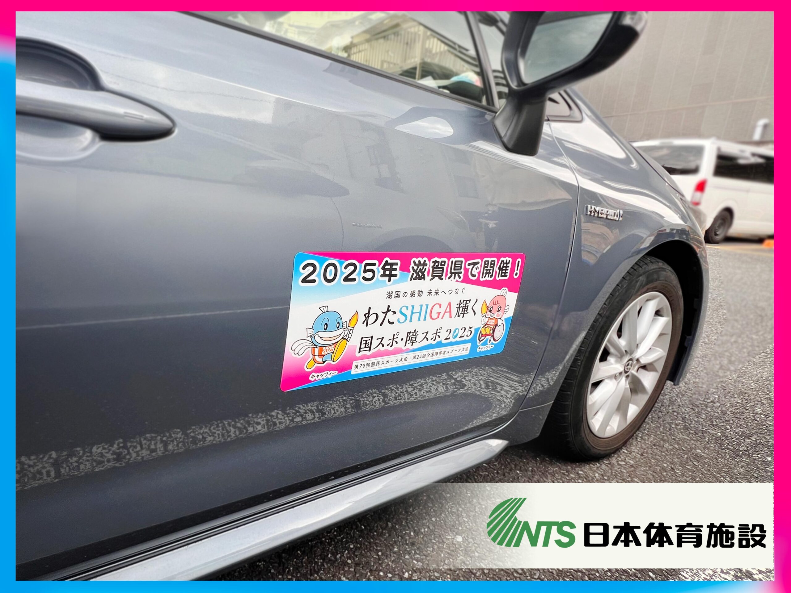 平和堂HATOスタジアムのトラック・フィールド施工を担当し、ピッチ芝生を管理する日本体育施設は、わたSHIGA輝く国スポ・障スポを応援しています!滋賀県内では、車輛に大会マグネットを設置して走行中です。施工者、グラウンドキーパーとして、陰ながら、選手のご活躍と大会の成功をお祈りいたします。