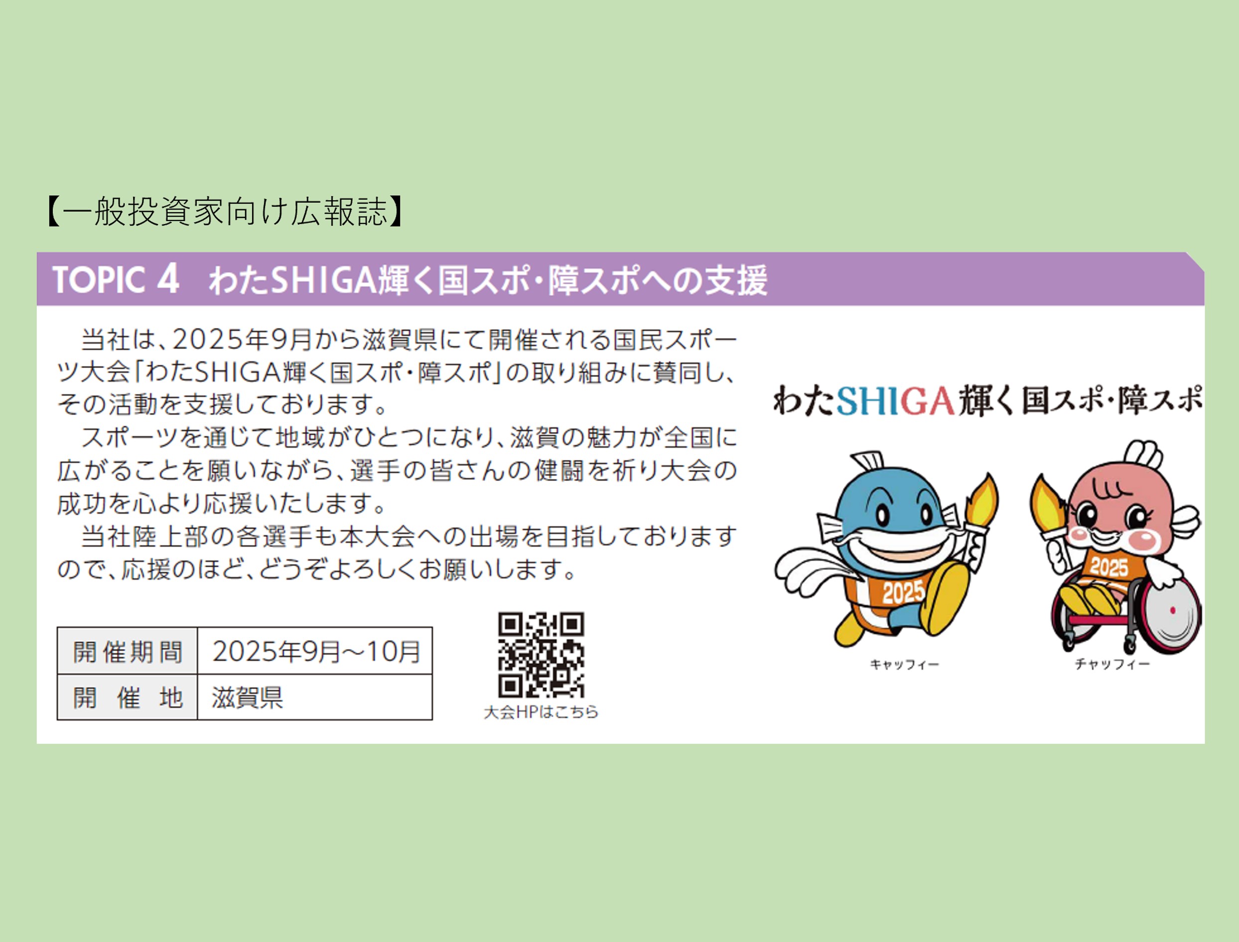 「わたSHIGA輝く国スポ・障スポ」を盛り上げてくださっている企業・団体のみな様の取組や応援メッセージを紹介します。